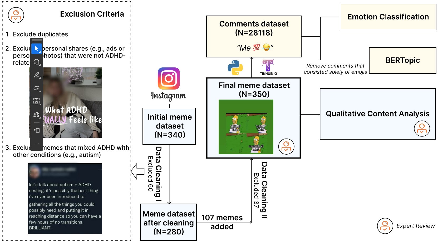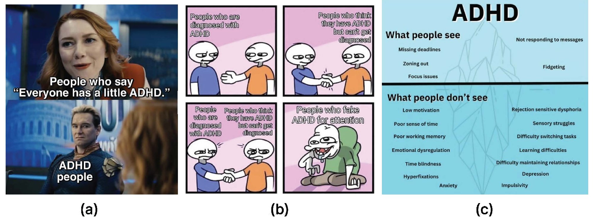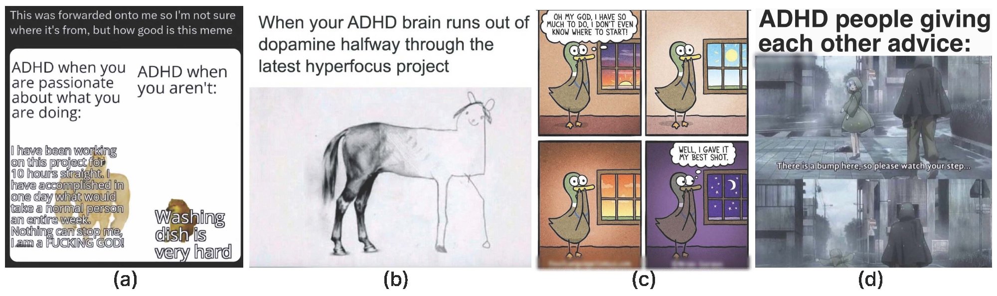 While public discourse often reduces Attention-Deficit Hyperactivity Disorder (ADHD) to stereotypes that overlook the invisible struggles of those who live with it, ADHD people are increasingly using social media to express their experiences on their own terms. On platforms like Instagram, memes have become a powerful and accessible medium for expressing everyday challenges through humor and relatability. This study analyzed 350 ADHD-related memes and over 28,000 associated comments to explore how ADHD was expressed and engaged with in online spaces, and consulted a neurodevelopmental science and clinical researcher. Findings show that memes depict behavioral inconsistencies, internal conflicts, and societal pressures, while comments reveal strong resonance, personal identification, and peer support, including informal self-diagnosis and shared experiences. By combining meme and comment analyses, this study contributes to digital mental health research by demonstrating how memes serve as an interactional mechanism for neurodivergent storytelling and identity formation and informing future platform design.